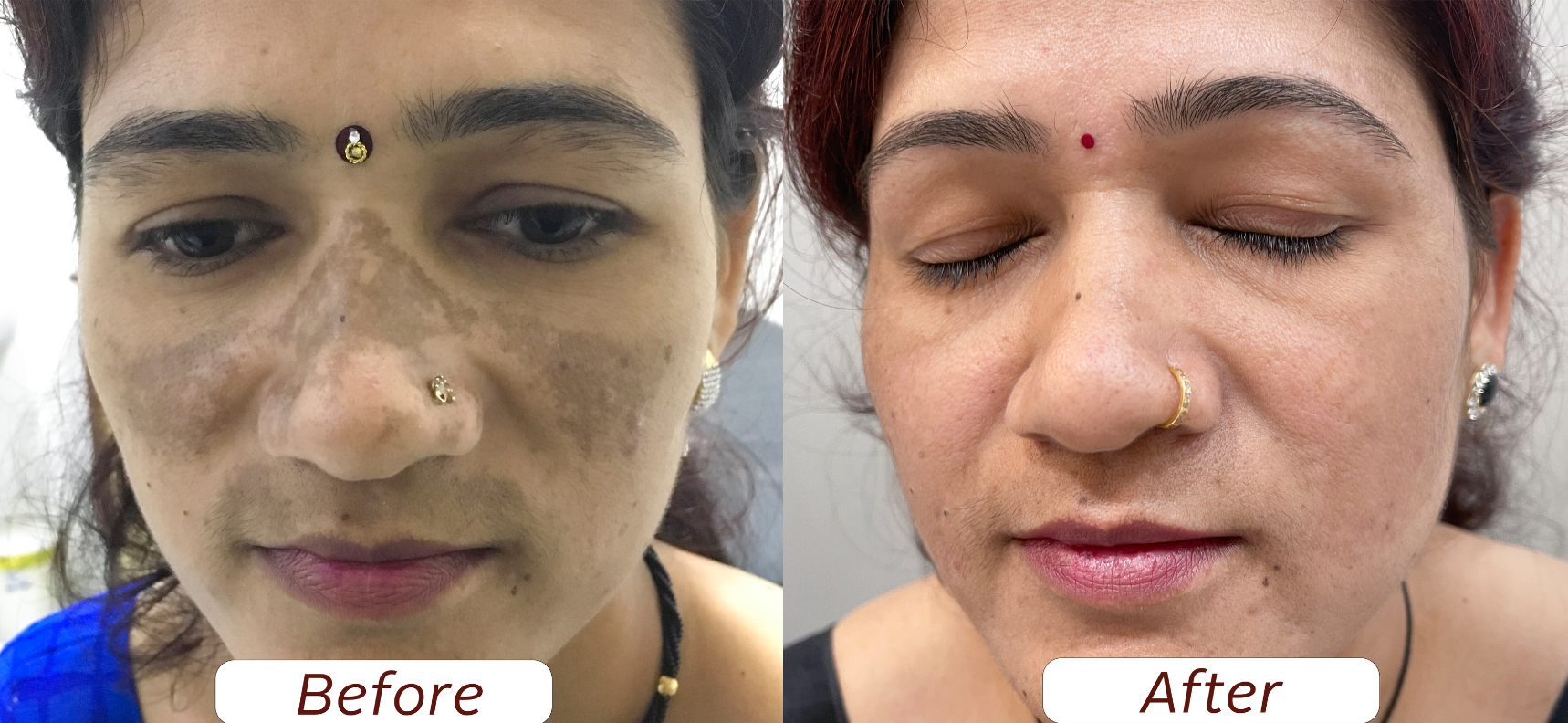 For stubborn cases, oral tranexamic acid, superficial chemical peels, microneedling with topicals, or low-fluence lasers and light-based therapies may be added to enhance results while minimising the risk of post-inflammatory darkening. Treatments are usually spaced over weeks to months, with gentle, barrier-supporting skincare to reduce irritation and sensitivity. Because melasma is a chronic, relapsing condition, maintenance creams, strict photoprotection, and avoidance of known triggers are critical to preserve clearer, more even-toned skin long term.