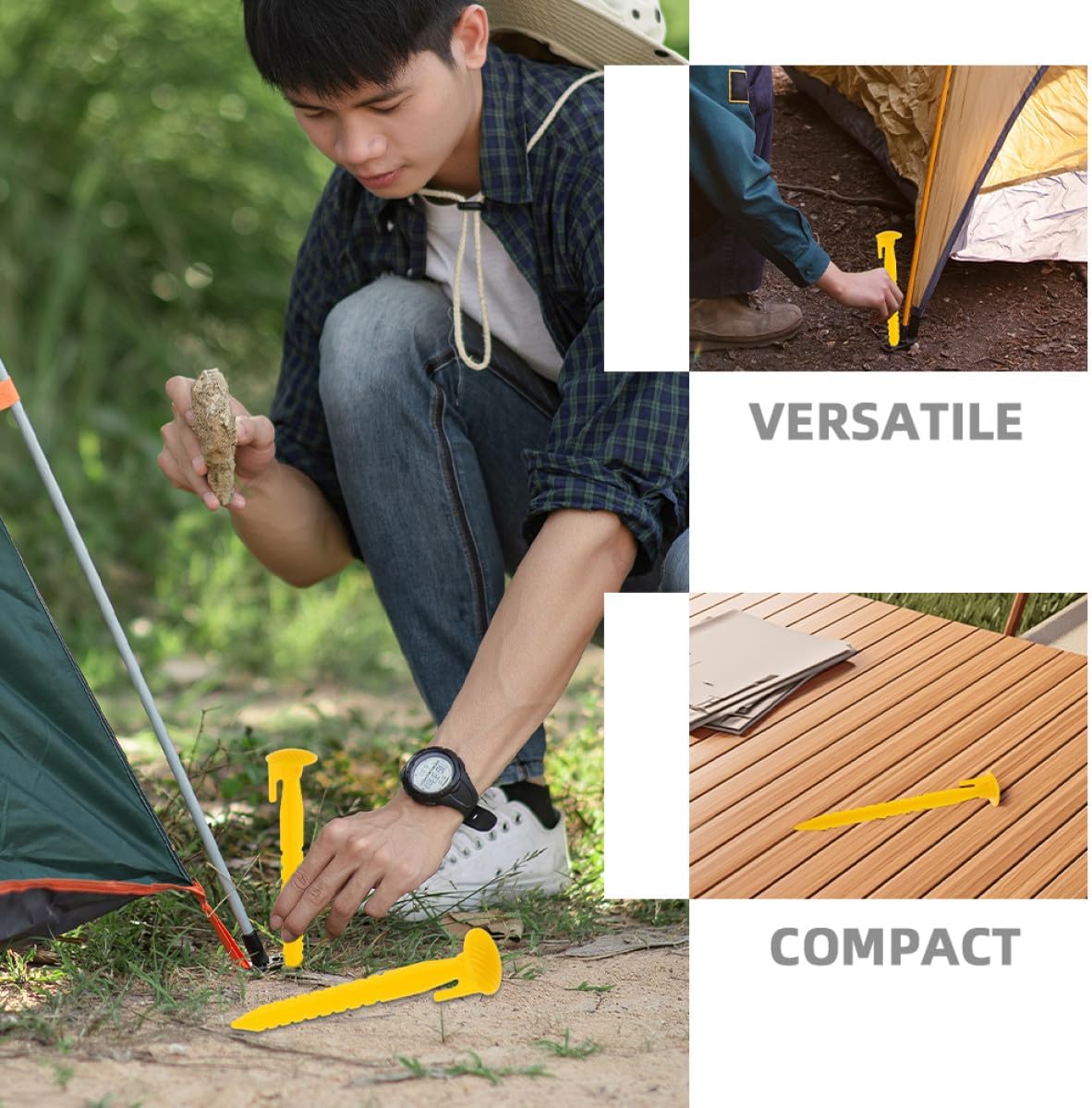 Package Include 36 x plastic tent pegs Features -Product Info:Plastic tent nails -Multiuse functionality: suitable for camping, beach outings, and other outdoor activities, these stakes are versatile and useful umbrella sand anchor. -Portable and lightweight: compact and easy to carry, these stakes are practical for travelers with packing space reusable anchoring pegs. -Effortless installation: with a userfriendly design, these stakes can be quickly inserted into the ground, making tent setup simple and fast plastic landscaping stakes -Color:Yellow - performance: made from durable materials, these stakes are designed to withstand repeated use without breaking. -Material:PP -Size:22.50X3.50X3.50cm/8.84X1.38X1.38in -Firm ground hold: the serrated edges provide a strong grip, ensuring your tent stays anchored in various weather conditions snow tent stakes.Goods Descriptionbackpacking plastic stakes The sharp, pointed ends make them easy to drive into the ground, while the serrated edges ensure a firm hold.courtyard tarp stakes These outdoor plastic stakes are designed with user convenience in mind.camping tarp pegs practical for camping, gardening, and other outdoor activities, these stakes provide reliable anchoring for your tents, tarps, and other shelters