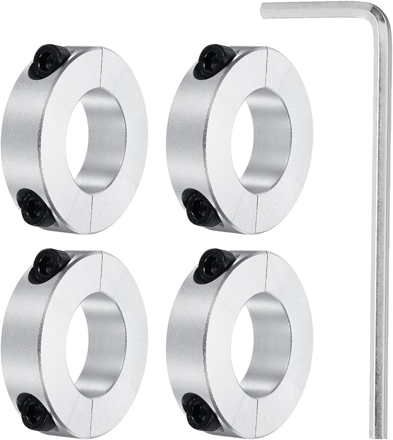 What is this?The shaft collar is mainly used to fix one end of the ball guide shaft and can be used as a simple stop to prevent the ball guide shaft from slipping out. Suitable for motor bases, drive shafts, machine tools, and printing machines. Widely used in industrial automation and conveyor belt systems in manufacturing. for daily use also used for updating lawn and garden equipment like hand trucks, yard trailers, and more.What will I get?Material: Aluminum;Color: Silver;Size: 6mm x 20mm x 8mm / 0.24 Inch x 0.79 Inch x 0.31 Inch (ID*OD*Thickness);Height: 8 mm / 0.31 InchIn the package of: 4 Pcs x Shaft Collars( Contains 1 x M5 hexagon wrench)Are there any advantages of the product?1. Set screw shaft collar made of aluminum alloy material, stable performance, oxidation resistance, and rust resistance, long service life.2. The design has good matching performance, closely fits the guide shaft, and has strong locking force and support force.How to use it?1. Put this ring on the guide shaft. 2. Then tighten the screw to make sure the ring is firmly on the guide shaft.What should I notice?Please confirm the size before you buy.