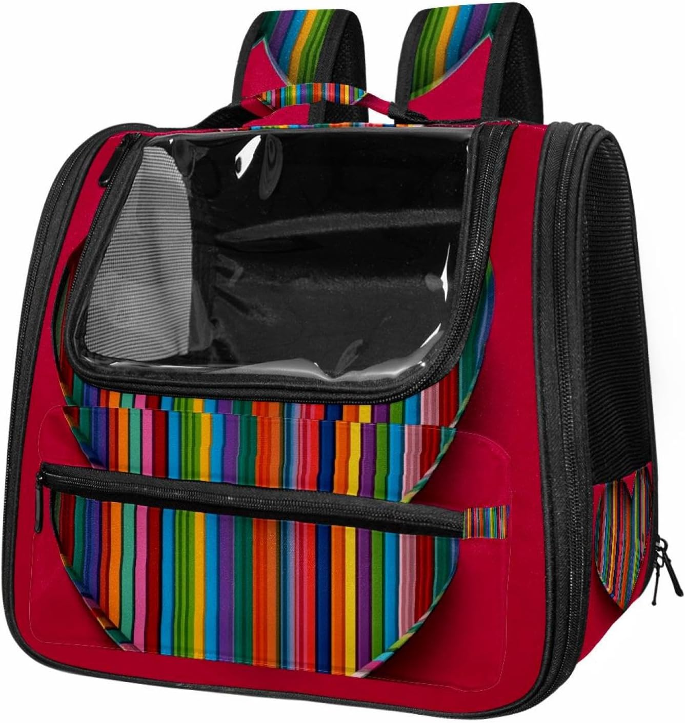 Well made: Cat Backpack Carrier is made from 900D oxford fabric, pp webbing, velvet, nylon, which is very sturdy, environmentally friendly and breathable. Not easily scratched by pet’s claws, pet backpack carrier is SAFETY & ANTI-SCRATCH. The back padding will give you a comfortable and breathable experience. Ventilated Backpack: With a breathable window in the front, this pet backpack allows cats to enjoy the sun without feeling stuffy. There are two side pockets and one big front pocket, and you can take foods or toy for your kitten pet. It is big enough for cat to turn around, and there are side pockets and hook holes, you will enjoy the greatest convenience when taking your cat out. Perfect size: Cat carrier is 15.75x9.84x13.78in/40x25x35cm. Fits most small/medium sized cat, dog, and pet. Quality fleece bed provide a comfortable place for your pet. Lightweight and easy to carry to all places. Built-in harnesses keep your naughty friends from escaping. Removable cosy mat for easier cleaning and let your pet enjoy it inside. Easy to carry: The adjustable shoulder strap of pet carrier bag help you hands-free carrying and makes it the most safe and convenient pet carrier bag for your travel. Seat belt design provide pets with safety protection throughout the trip. Pad protection keep your pets comfortable during travel. Unique Design: Innovative inside graphic design gives you a stereoscopic 3D visual experience. You also send us the photos you interest to make your unique dog or cat carrier. Pet bag is also a amazing gift for pet lover.