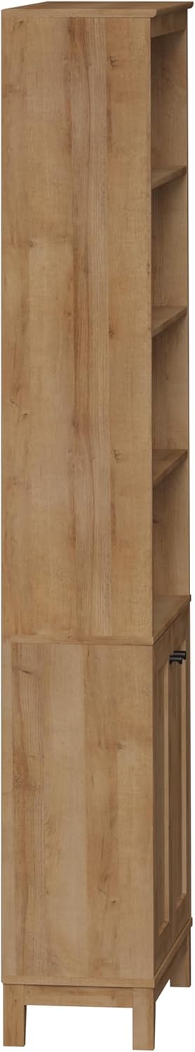 The Yaletown Bookcase Storage Cabinet brings chic functionality to any home. Its clean-lined profile and understated hardware create a simple silhouette that works in so many settings. While the panel door design and real wood tapered legs adds a touch of upscale elegance. Use it as a buffet cabinet in your dining room or as bookshelf in your living room or bedroom. It can even be used as a display cabinet in your foyer or as a bathroom storage cabinet or pantry cabinet. The design features two miter doors with 3 adjustable shelves that hold 20 pounds each. The warm oak finish of this storage cabinet with doors and shelves gives an elegant touch to any decor. Constructed from durable, non-toxic, and CARB-2 compliant laminated composite woods, this brown floor cabinet can suit various space needs. The cabinet arrives flat-packed with an easy-to-follow instructional guide for a hassle-free assembly.