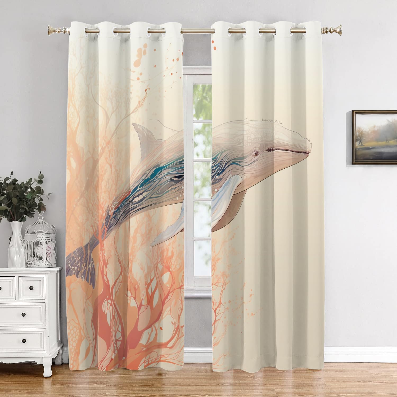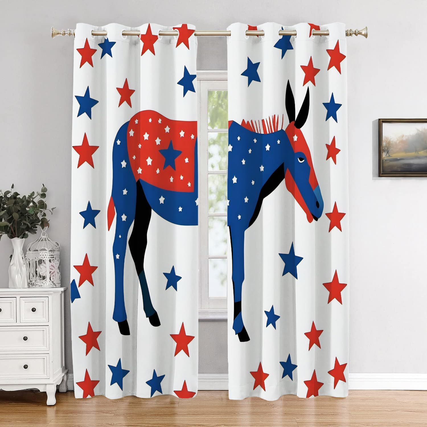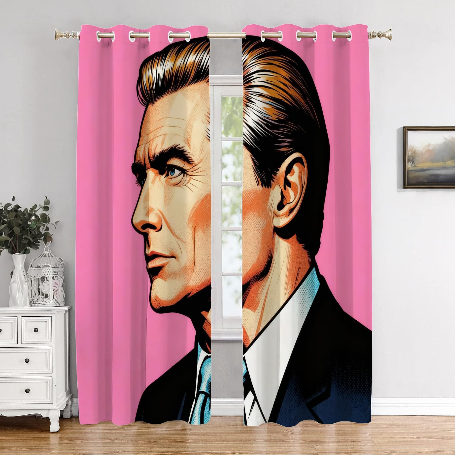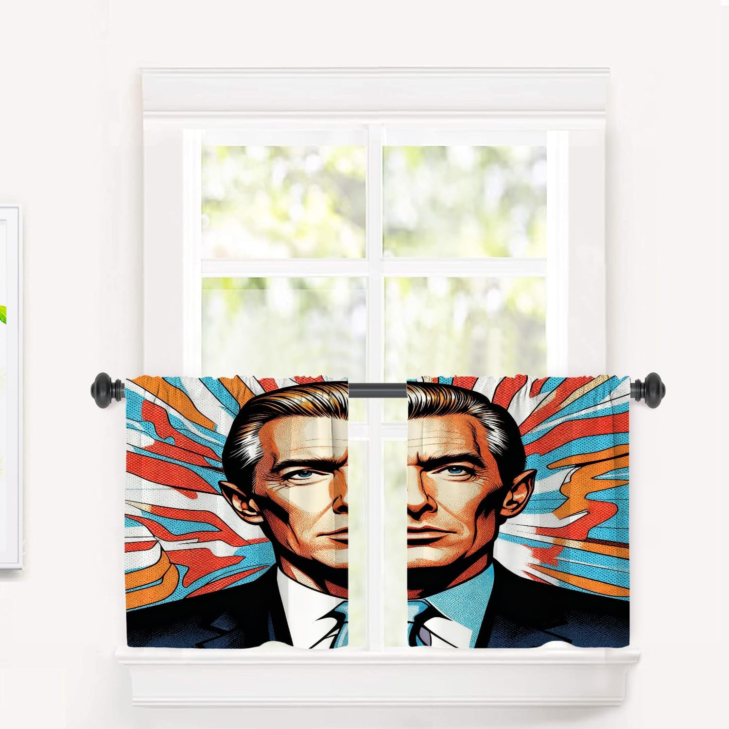• Material: The valance is made of 2 layers of high quality polyester fabric with a black shading layer in the middle. High-definition laser-printing pattern is lively, vivid.Due to the black shading layer in the middle of the curtain, the overall tone is slightly gray.